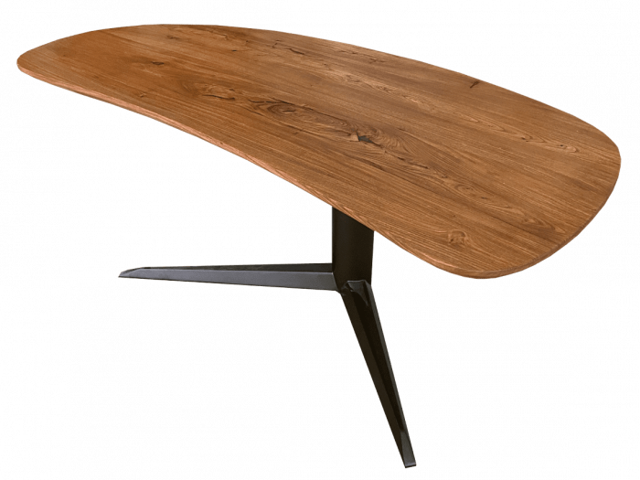 Современный, легкий и эстетичный письменный стол от наших мастеров "Bean". Столешница данного изделия выполнена из массива горного вяза/карагача, идеально отшлифована и отполирована. Все трещинки и природные неровности пролиты эпоксидной смолой для создания идеально гладкой поверхности. Финишное покрытие исполнено водным лаком для жесткости покрытия. Тонировка производилась экологически чистыми немецкими маслами. Толщина столешницы составляет около 40 мм. Опора металлическая, высота готового изделия составляет 765 мм.